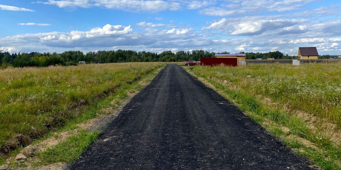 Строительство дорог на территории ИЖС Монино завершено: прошел последний этап отсыпки полотна асфальтной крошкой.